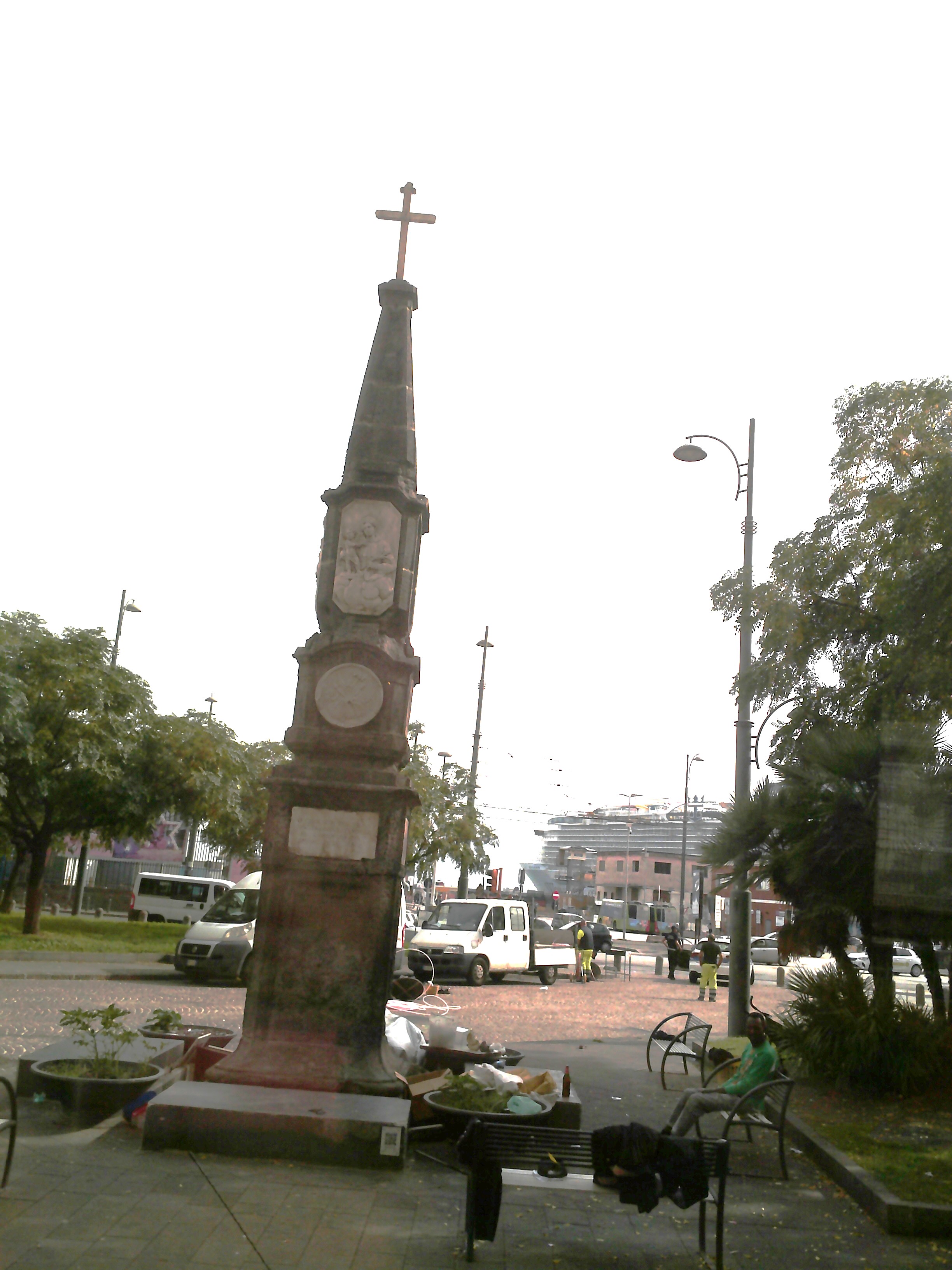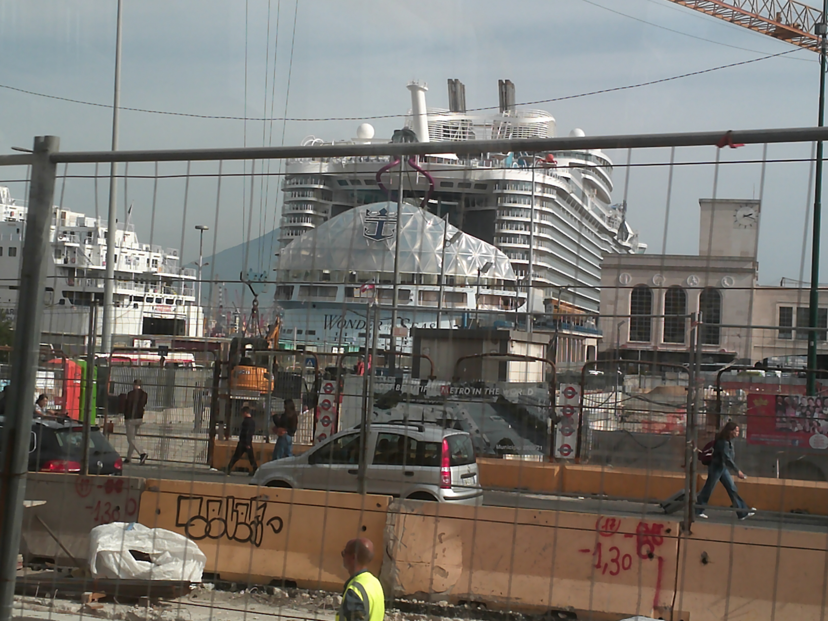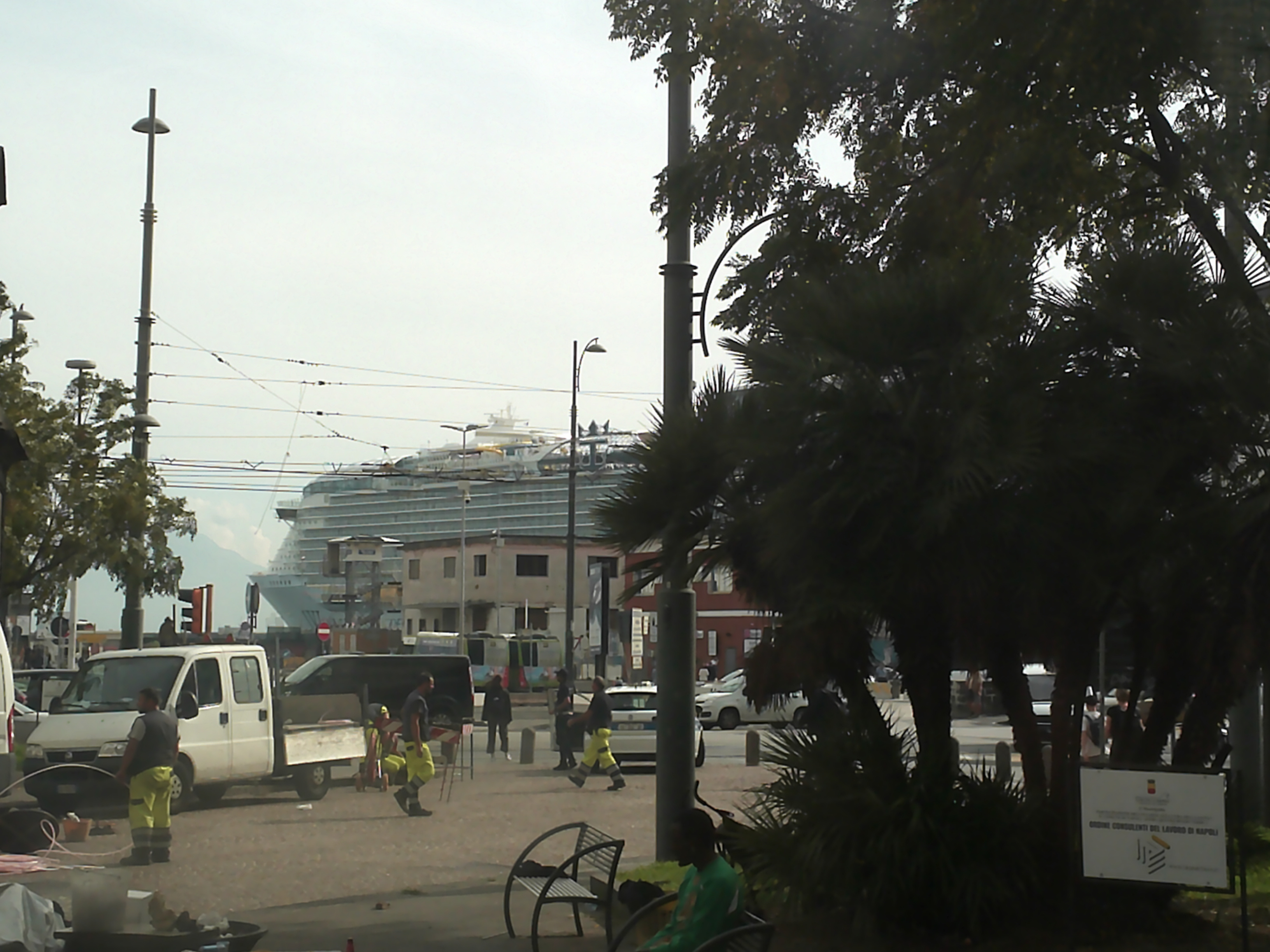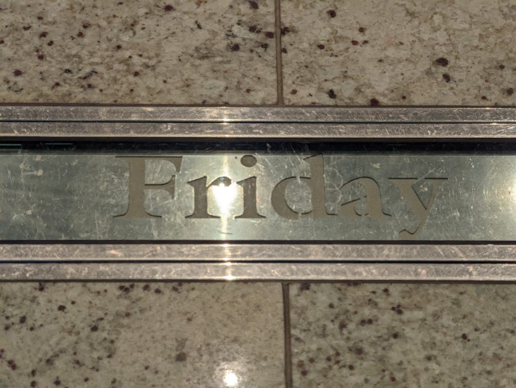 My scooter is waiting for me outside my room. I take a few pictures of Naples, then head to the Windjammer for some grub. I am solo on this cruise, so I am taking over the photo duties usually managed by my niece, who takes the day of the week sign on the floor of the elevator. I roll into the elevator, admiring the impressive dragon sculpture hanging from the ceiling as I zoom up to the 15th floor. I will figure out later what the dragon represents, as well as the statues in Central Park.