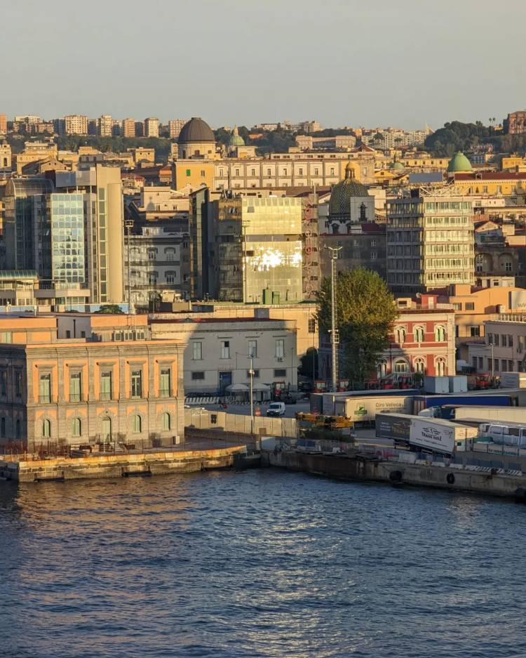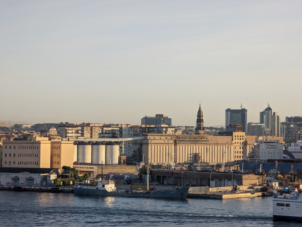 My alarm blasts at 7:00 am. No sleeping in for me, not on my cruise! I throw off the covers and fling open the curtains to my balcony. It is a ritual I started on my very first cruise, and it never gets old. The ship is already docked, and I am greeted by the breathtaking view of the Port of Naples. I am in Italy, baby! I take a few moments to soak it all in, feeling the excitement build. Okay, time to get moving!