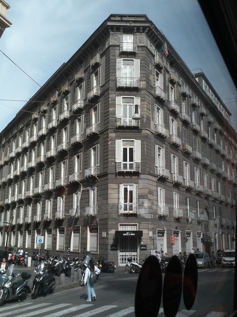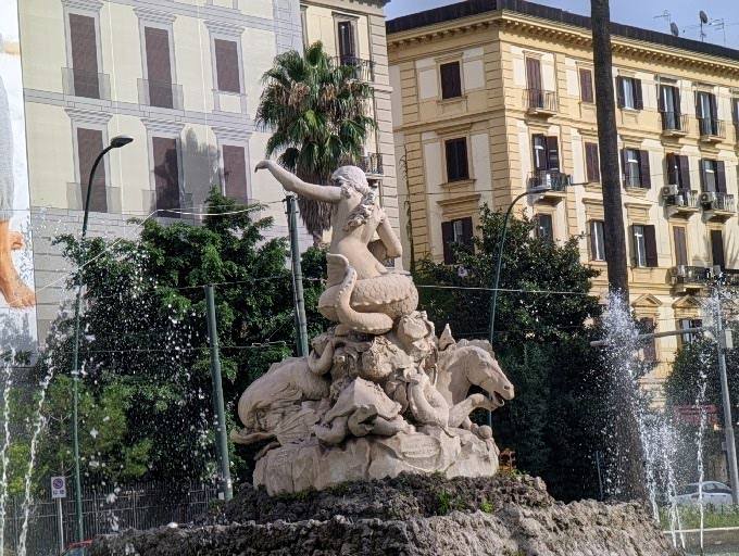 As we roll out of the port, our tour operator announces we are approaching the breathtaking Castle Nuovo. I snap pictures as fast as my fingers can fly—the bus slows down, but we are still moving. Next up, the stunning Church of Santa Maria, followed by the Mermaid Fountain. I cannot get enough of the ancient buildings, the architecture that whispers stories of centuries past. I keep my camera glued to my face, capturing everything from what might be legendary landmarks to what could just be a charming old building. Either way, I am smitten.