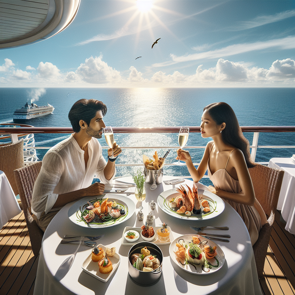 2. Al Fresco Dining – Savor the flavors of the sea alongside the sea itself! Imagine indulging in a mouthwatering seafood feast on your private balcony as the ship glides smoothly through the waves. Or picture yourself in a breezy outdoor restaurant, breakfasting on fresh fruit and pastries as the ship anchors in a stunning port. Outdoor dining is a must-try cruise experience that combines two of the best things about cruising: delicious food and fresh ocean air.