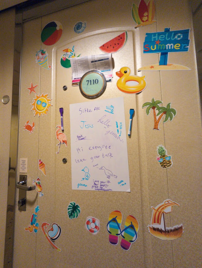 - Magnet mania: These are a cruise must-have! I bring magnets to put on my stateroom door. And I bring magnet hooks to hang my lanyard, clothes, and other things. The walls in the room are magnetic.
