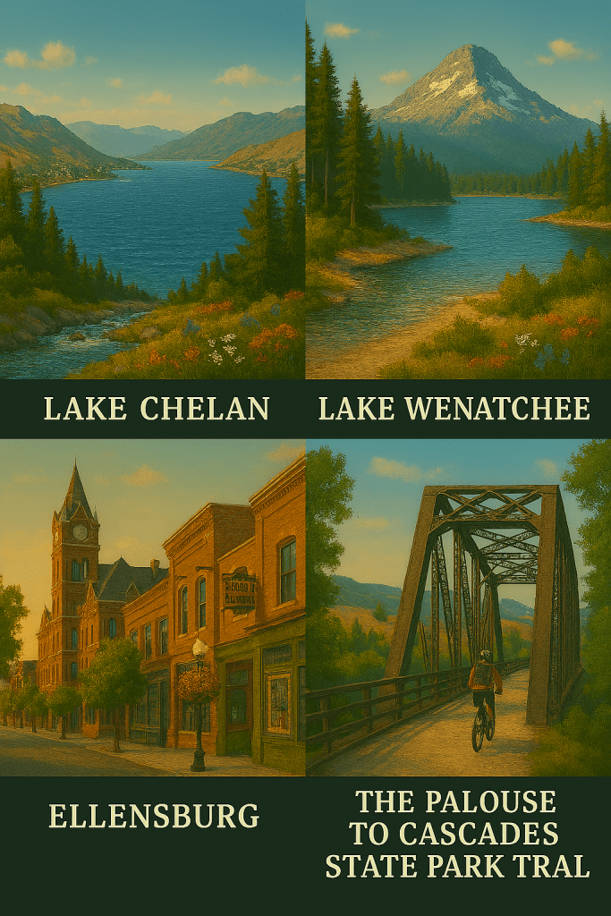 Central Washington is famous for its diverse landscape: rugged mountains, scenic river valleys, and vibrant towns. Head to Lake Chelan for summer boating and wine tasting, or spend a day at Lake Wenatchee for swimming and hiking. The area around Ellensburg is a classic mix of college-town vibes, breweries, and local art. Don’t miss Cle Elum and Roslyn—both offer historic saloons, hiking, and even horseback riding. The Palouse to Cascades State Park Trail is a favorite for cyclists and hikers, running through some of the prettiest countryside you’ll find anywhere (Expedia, MyEllensburg, Central Washington Outdoor).