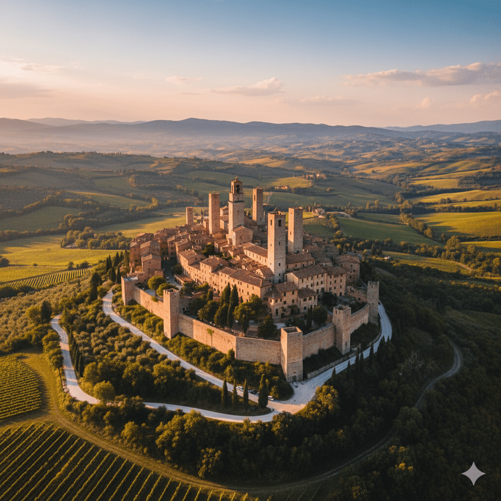 - Medieval Marvels: Explore the sky-piercing towers of San Gimignano, the Etruscan roots of Volterra, and the perfectly preserved city walls of Lucca, best experienced on a bicycle.