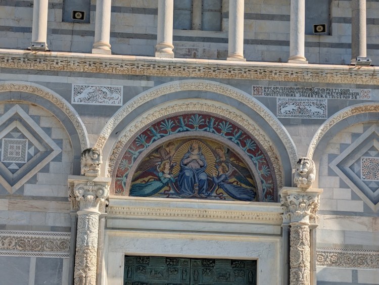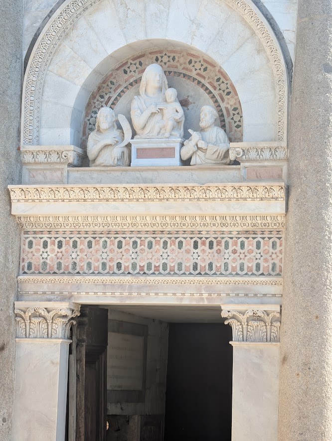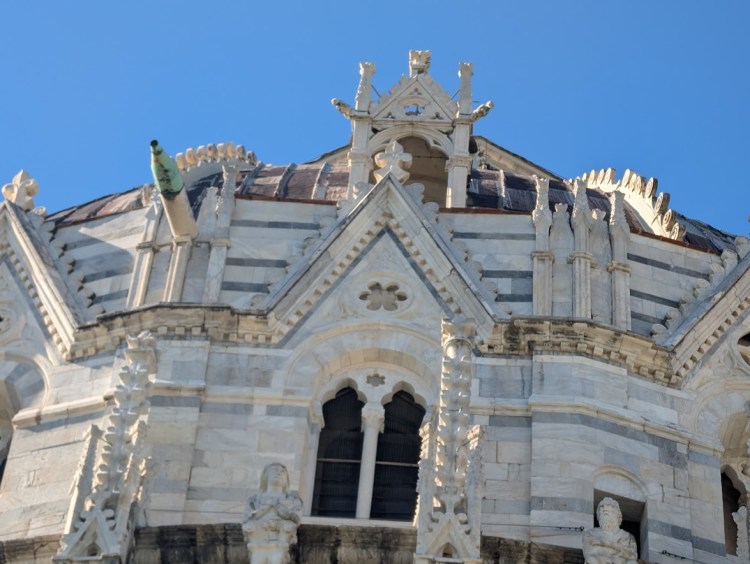4. The Cathedral & Baptistery Even if you don’t go inside, the exteriors of the Cathedral (Duomo di Pisa) and the Baptistery are marvels of medieval architecture. I was captivated by the craftsmanship; I took several close-up pictures, focusing piece-by-piece on the intricate doors and the stunning details of the structures.
